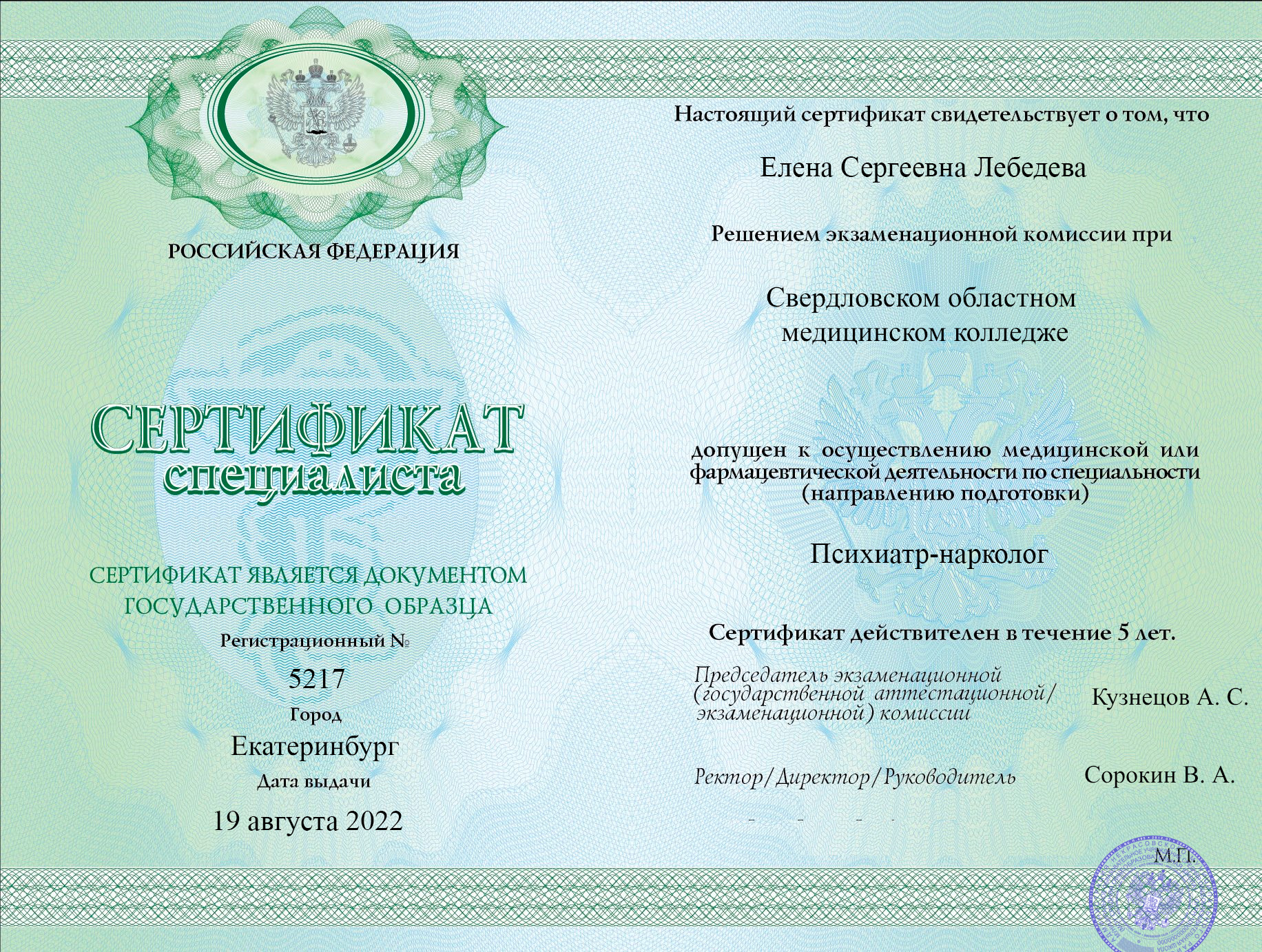 Елена Сергеевна Лебедева врач нарколог клиники доктора Стукаловой в Струнино